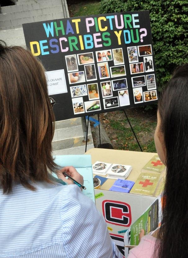 Pictures can be a springboard to conversation. As students respond during a fall semester activity fair, there are opportunities to talk about the intersection of life and Jesus.