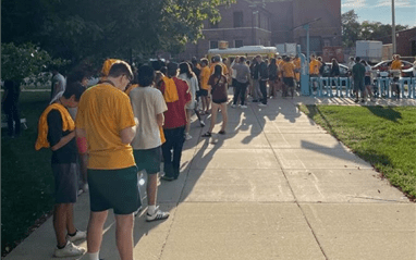 Doors opened at 7:50 pm and students flooded in. About 575 students packed that first meeting—the largest in nearly a decade.